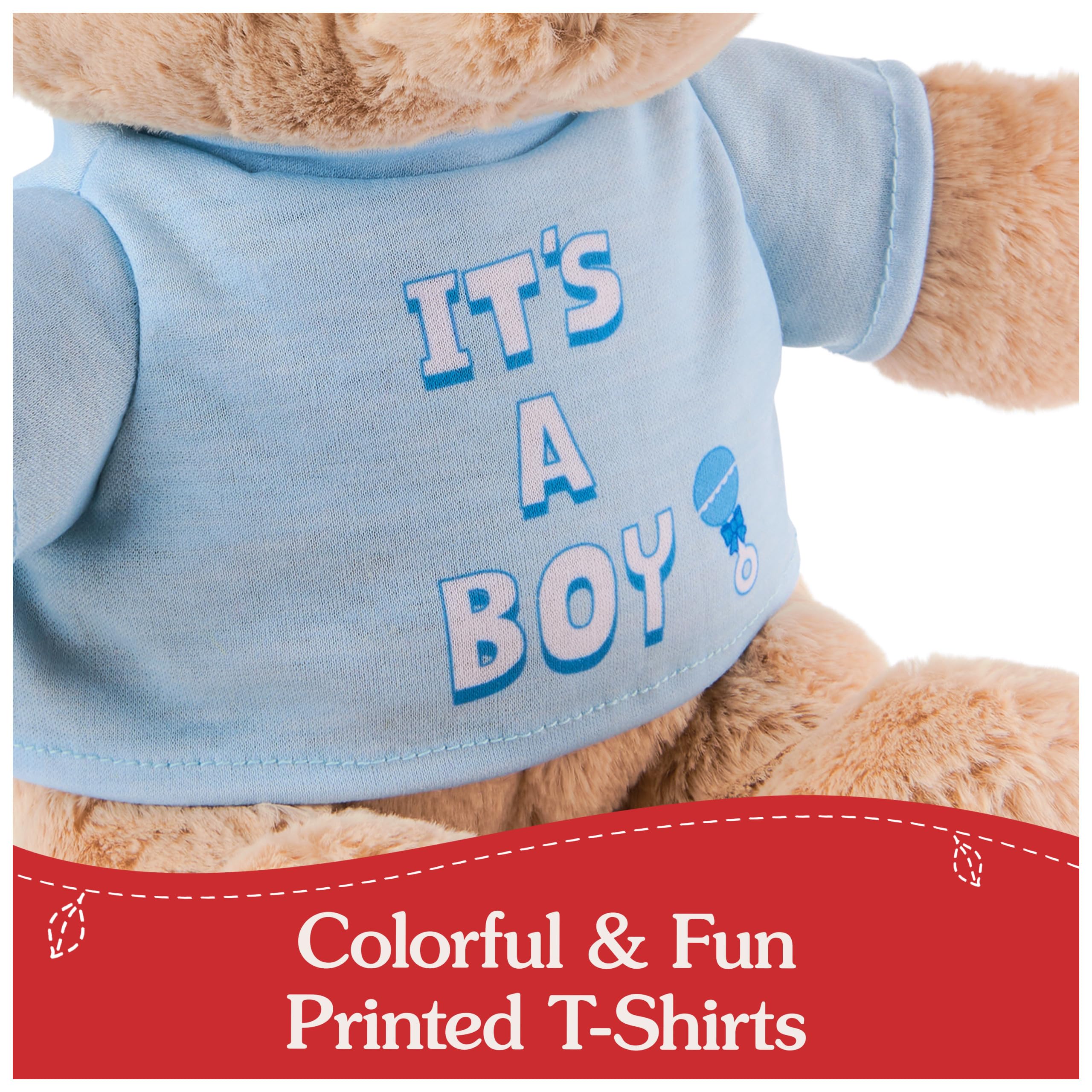 GUND “It's a Boy” Sustainable Message Bear with Blue T-Shirt, Teddy Bear Made from 100% Recycled Materials for Ages 1 and Up, Tan, 12”—