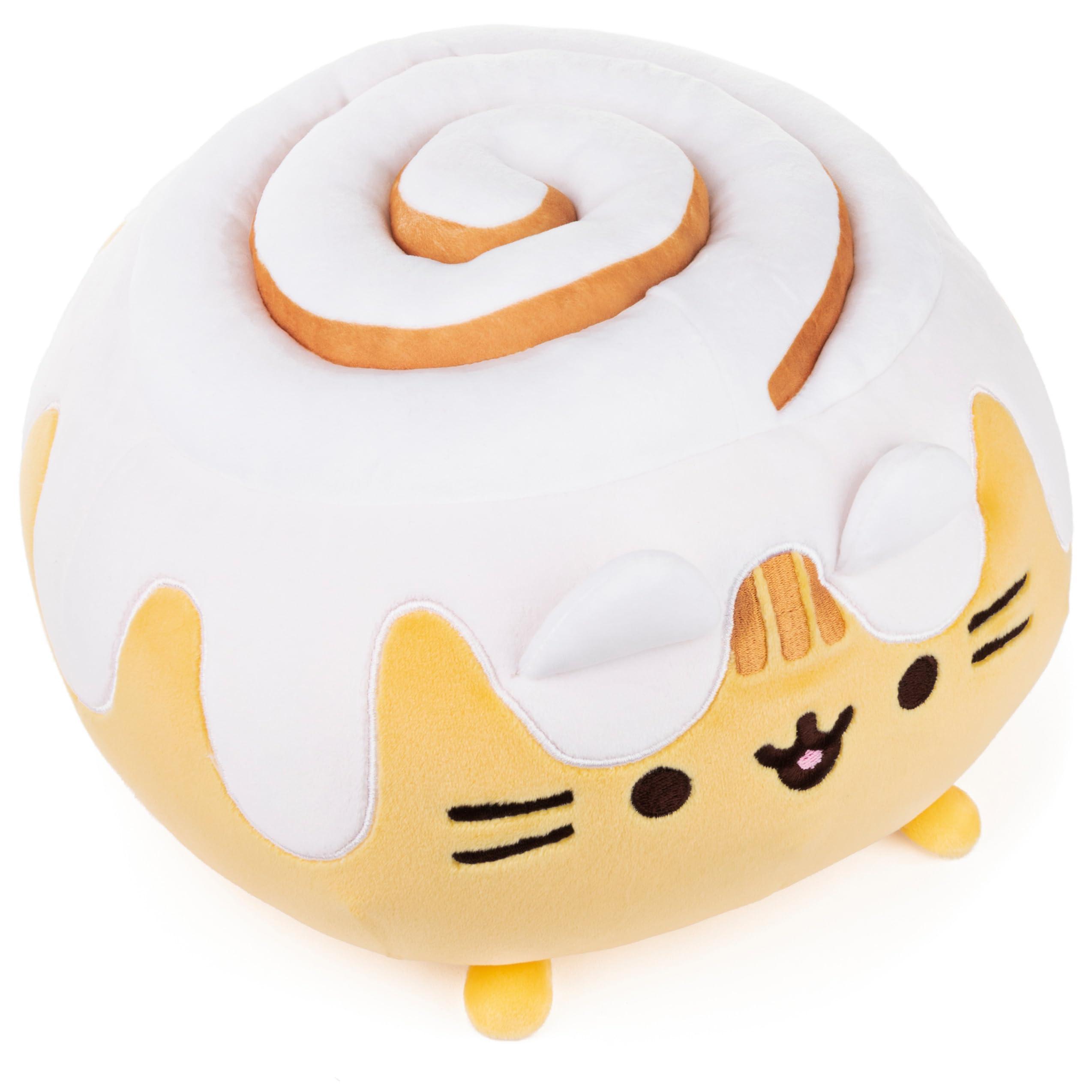 - CINNAMON ROLL PUSHEEN: Cinnamon Roll Pusheen features a swirled yellow & brown plush construction with a dollop of melted white icing on top. The Squisheen collection has uniquely elastic fabric that makes her extra squishy inside and super soft outside